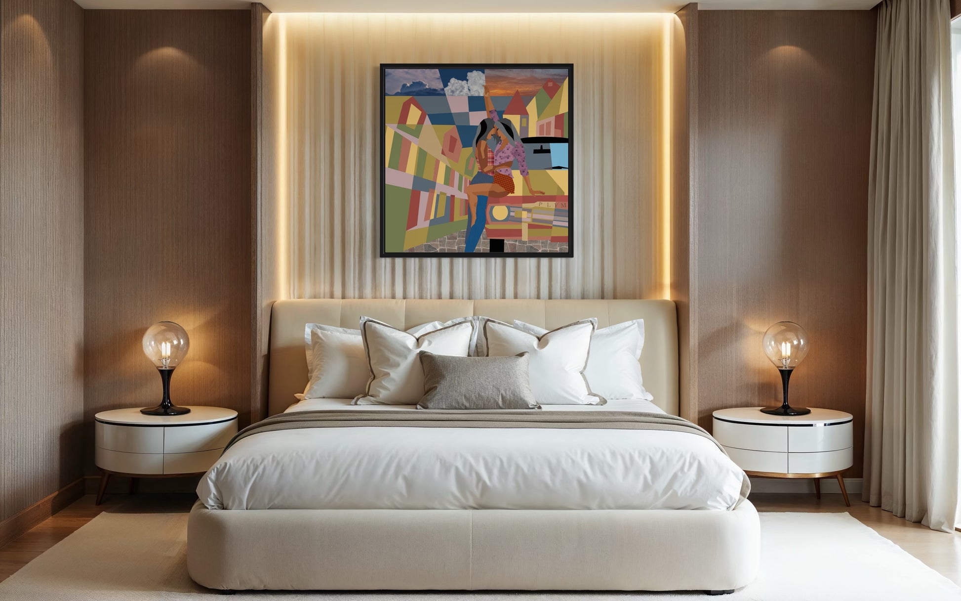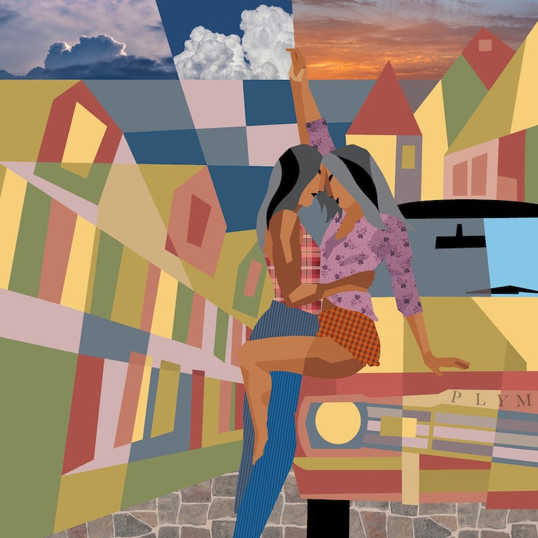 Inspired by the growing acceptance of same-sex relationships in recent years, "Dos Chicas" embodies a harmonious fusion of modern graphics and dynamic colors.