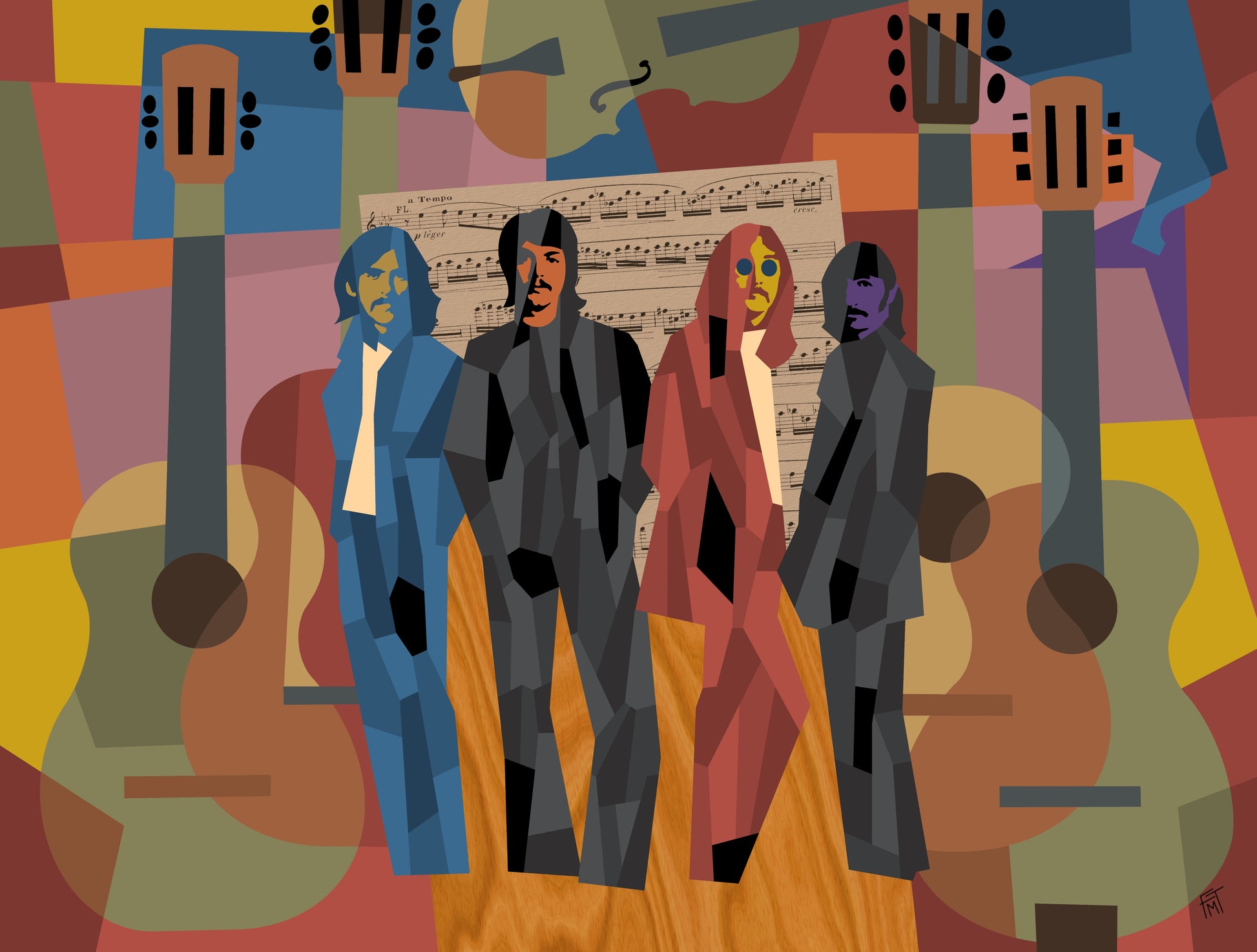 The work quietly echoes the spirit of collaboration and shared creativity, reflecting influences drawn from The Beatles’ enduring legacy. Without invoking a literal narrative, it captures the essence of musical synergy and the shaping of identity through communal expression, all articulated through a modernist vocabulary that respects both tradition and innovation.