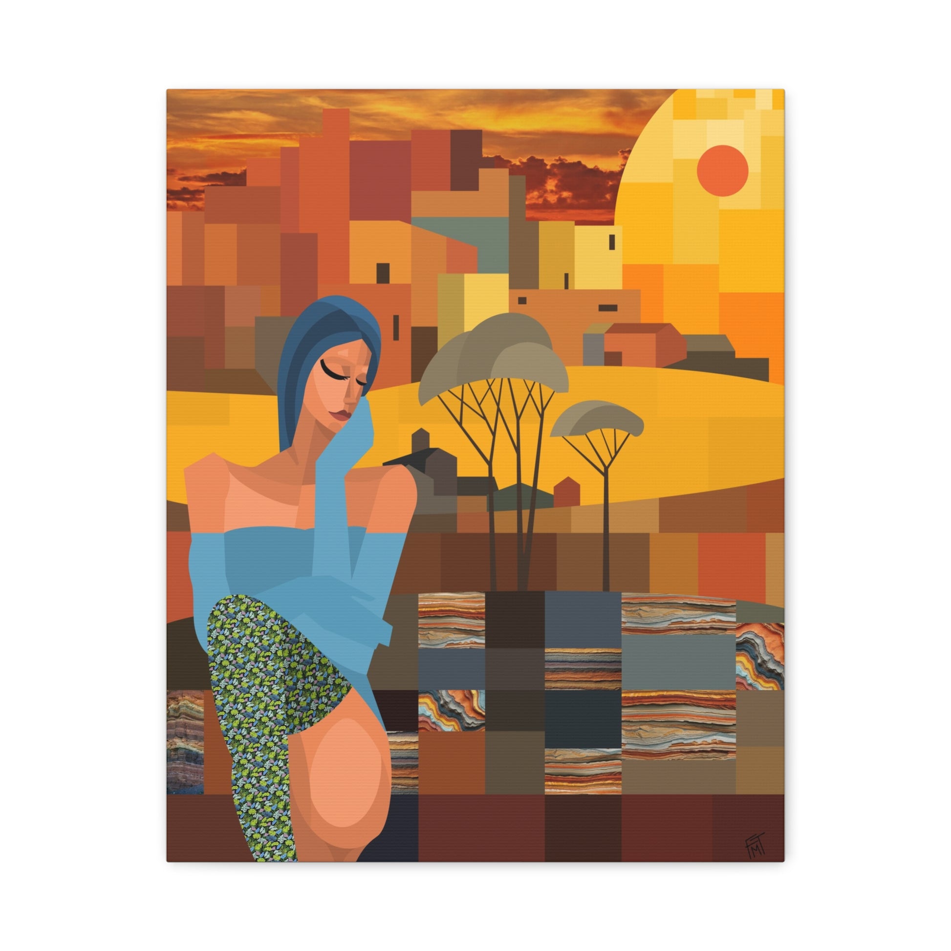 The contrast between the abstract, angular portrait and the serene, realistic sky is a reflection on how our inner worlds connect with the outer environment. With "Lucy," I hope to inspire you to recognize the beauty in both individuality and the shared communities that shape our lives.