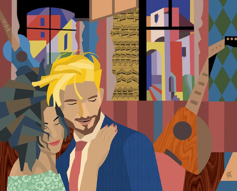 Frank Trocino is a retired architect turned painter currently residing in Santa Fe New Mexico. His path to Santa Fe began in New York, then to Oregon as a young child through College. From there he lived in Italy, Los Angeles, the Middle East, Portland, and Austin. Franks work can be seen in galleries, hotels, and the homes of private collectors internationally. He is a mixed media artist using acrylic paint, ink and collage and his subject matter is primarily couples and buildings.
